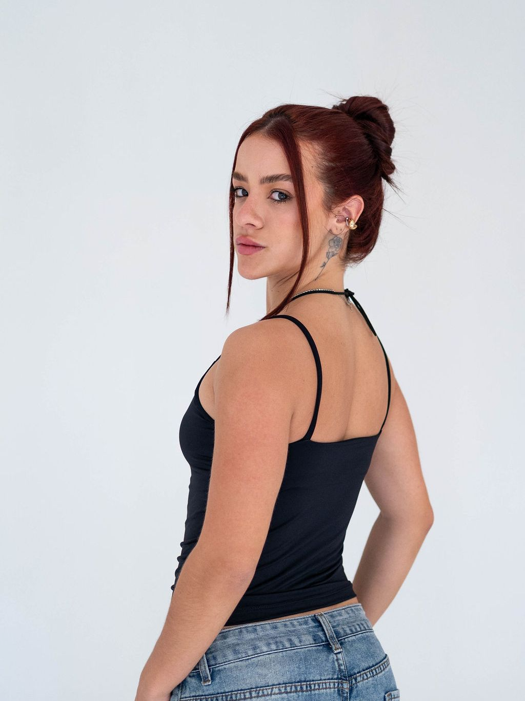 Blusa de Alça Fina em Poliamida Top - MC, Modêlo perfeito.